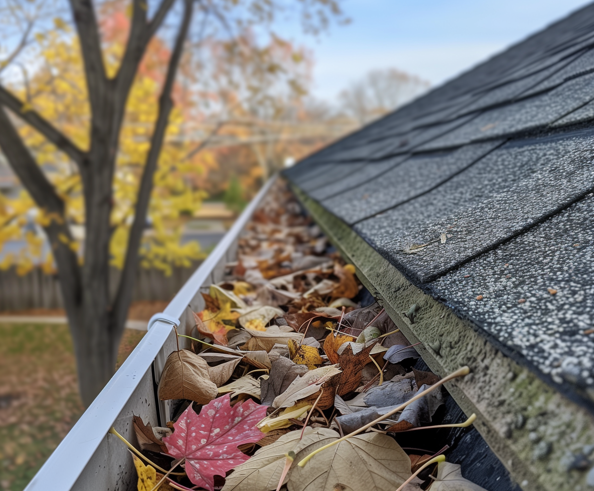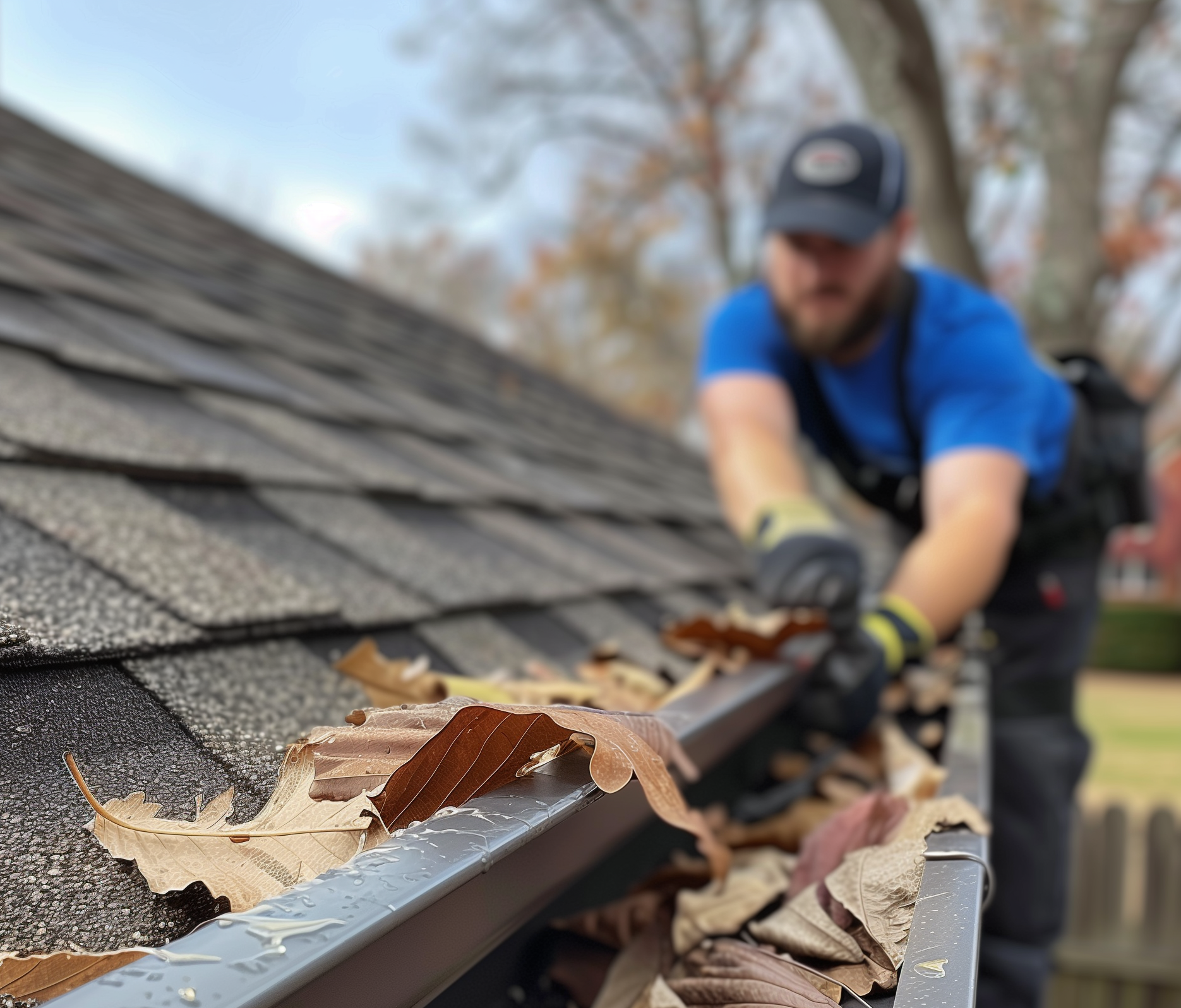 - Removing leaves, twigs, and any other debris clogging your gutters and downspouts